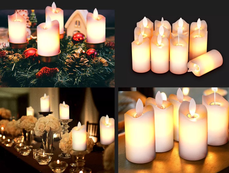 - 12x LED fyrfadslys med indbygget genopladeligt batteri. (Skal lade 24 timer første gang)