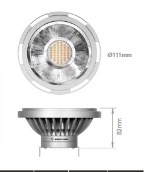 12w. 850 lumen (svarer nogenlunde til en klassisk 100w AR111 lampe).