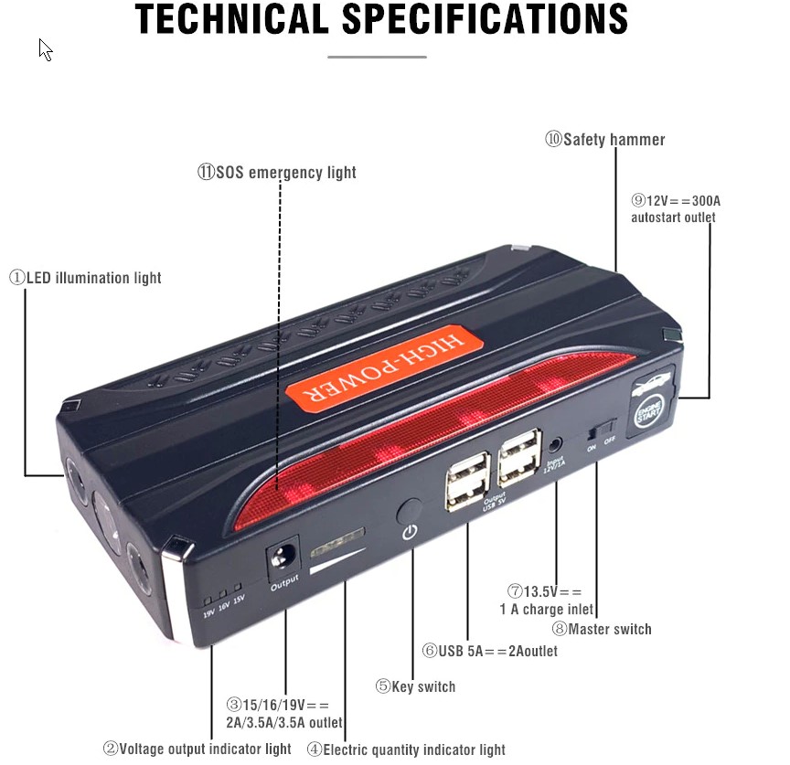 OBDIICAT Jump starter 12V 12000mA 3.0L diesel