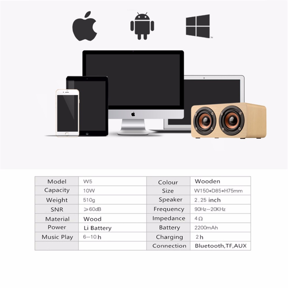 Retro Lys Træ Bærbar Bluetooth 3D Dual Højtaler