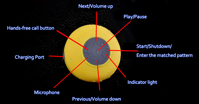 At blive brugt som en højttaler til din tablet PC eller computer, når du spiller spil, ser film eller lytter til musik; hvad mere er, med sin vandafvisende funktion (ikke tabe højttaleren i vandet!), kan du nyde håndfri musik og telefonopkald i brusebad, ingen bekymre sig om at bringe eventuelle skader på din telefon. Mini-størrelse, knapper designet og indbygget mikrofon, er det meget bekvemt for dig at bruge i din bil, kan du nyde håndfri telefonopkald og musik i og tilbyde dig en dejlig og behagelig vinkel for at bruge dine enheder. Kompatibilitet for alle enheder, som har bluetooth-funktionen, såsom Tablet PC, Laptop, PSP, TV, Computer etc.